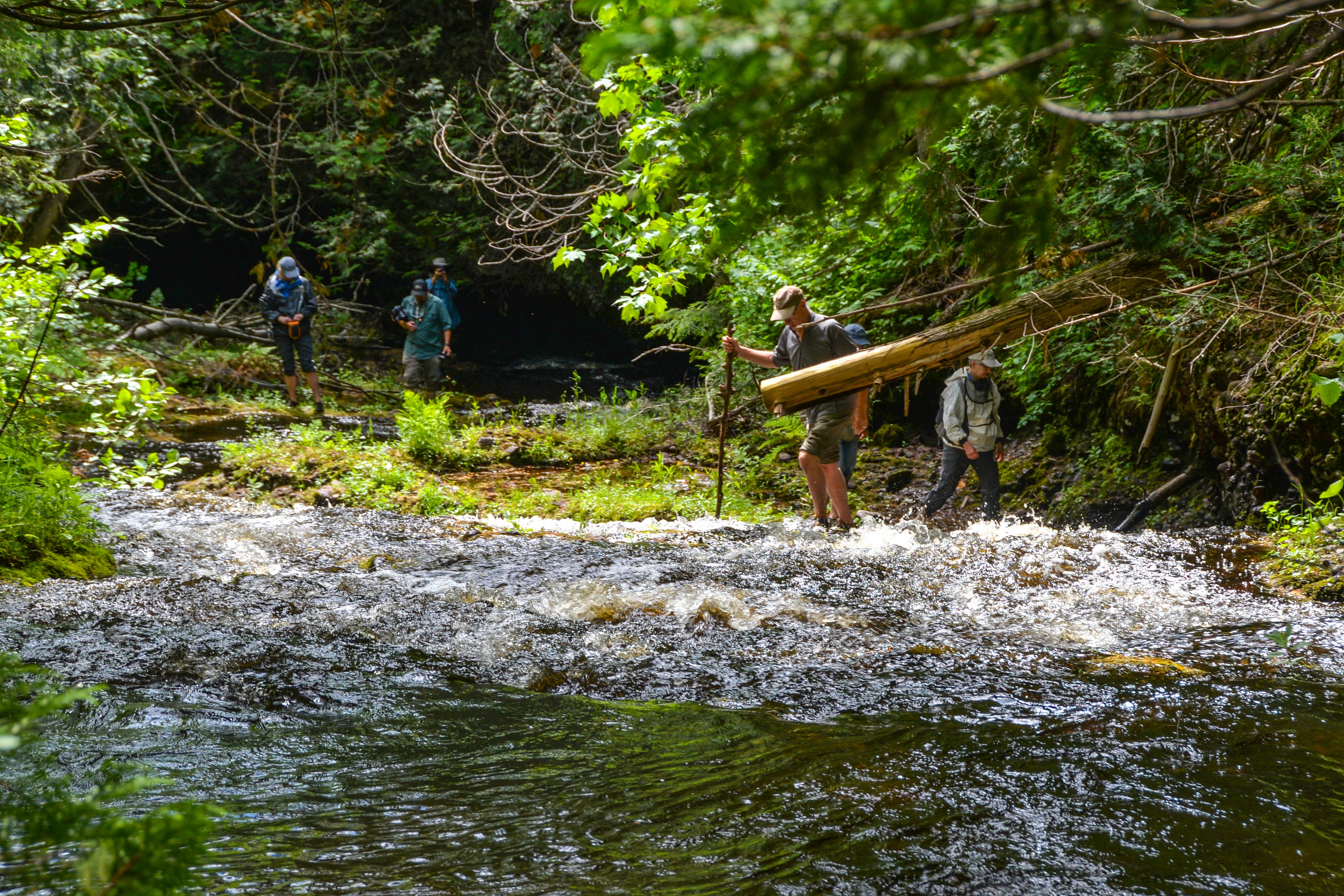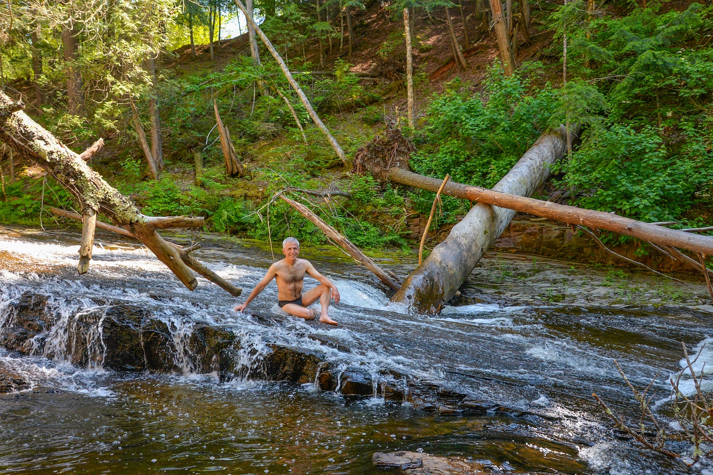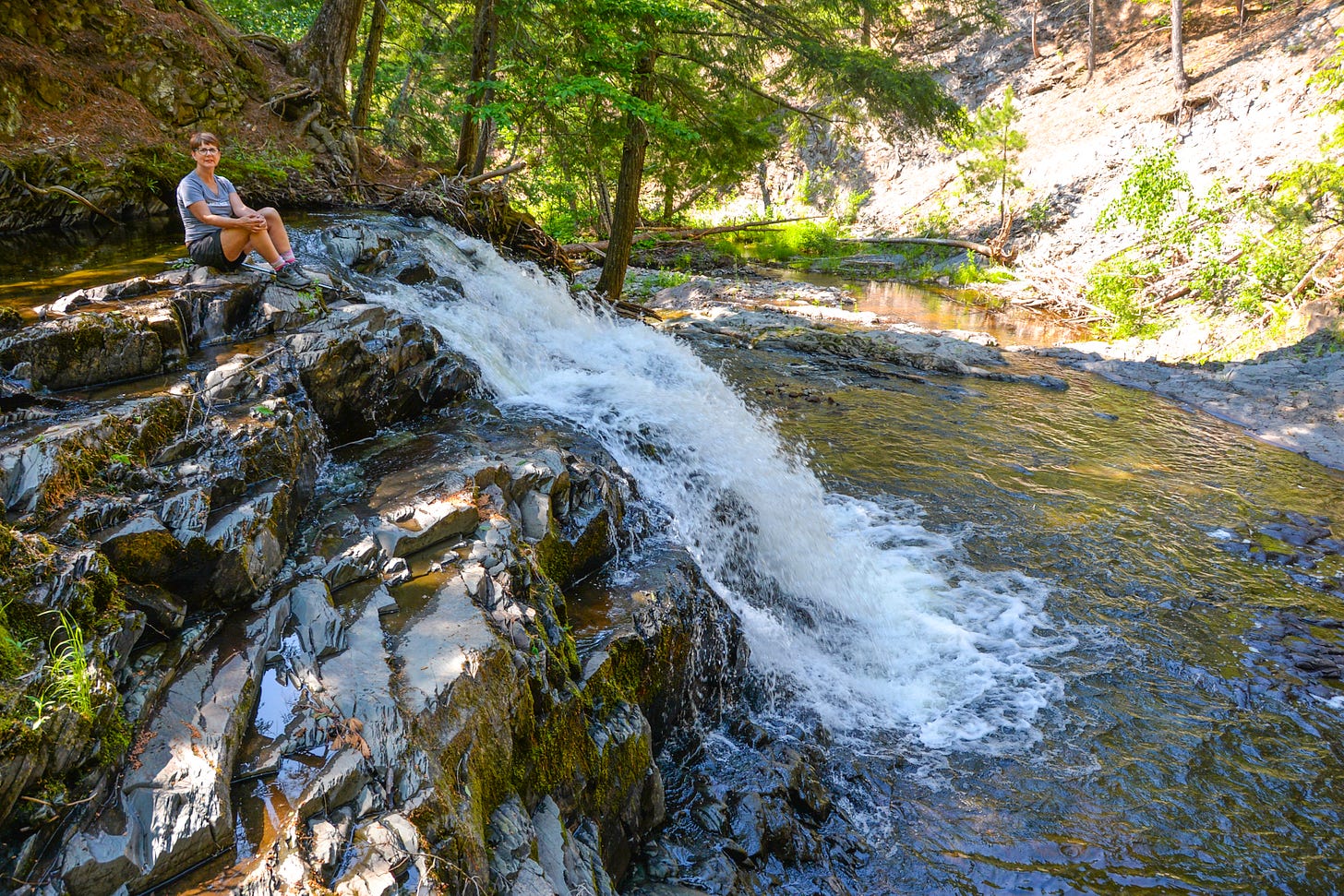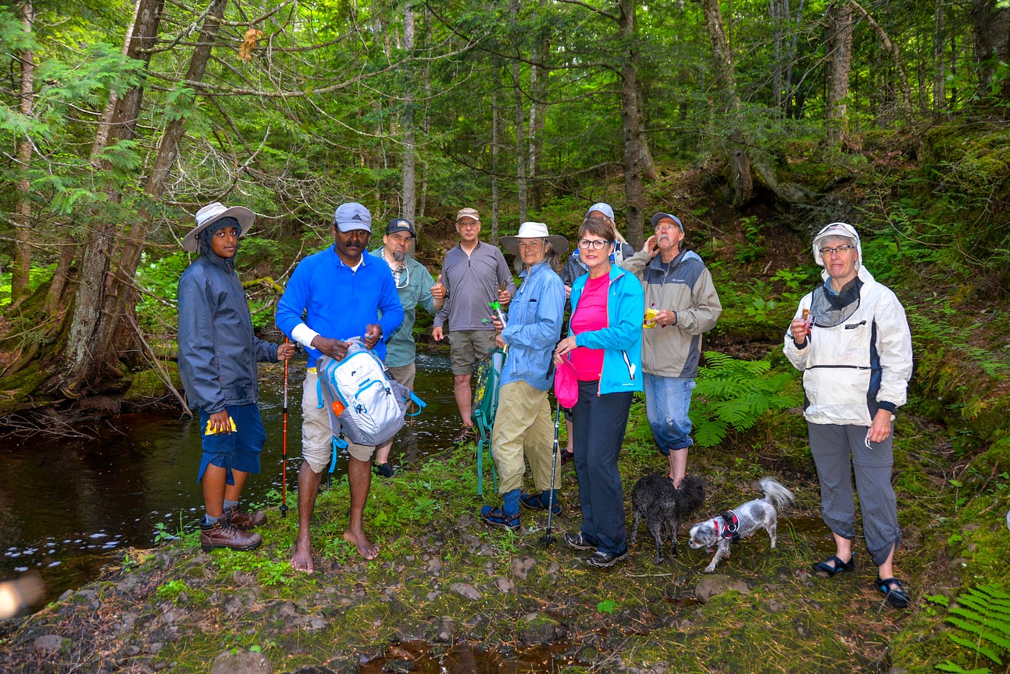 Our hiking leader Mark was out of town on a camping trip, so our friend Steve Jurmu (aka Yooper Steve at https://www.funintheup.com) led a hike to Penn Falls on the East Branch of the Firesteel River. This is definitely a lesser known falls in the area, but worth the effort to find given the geological formation through which the river flows.