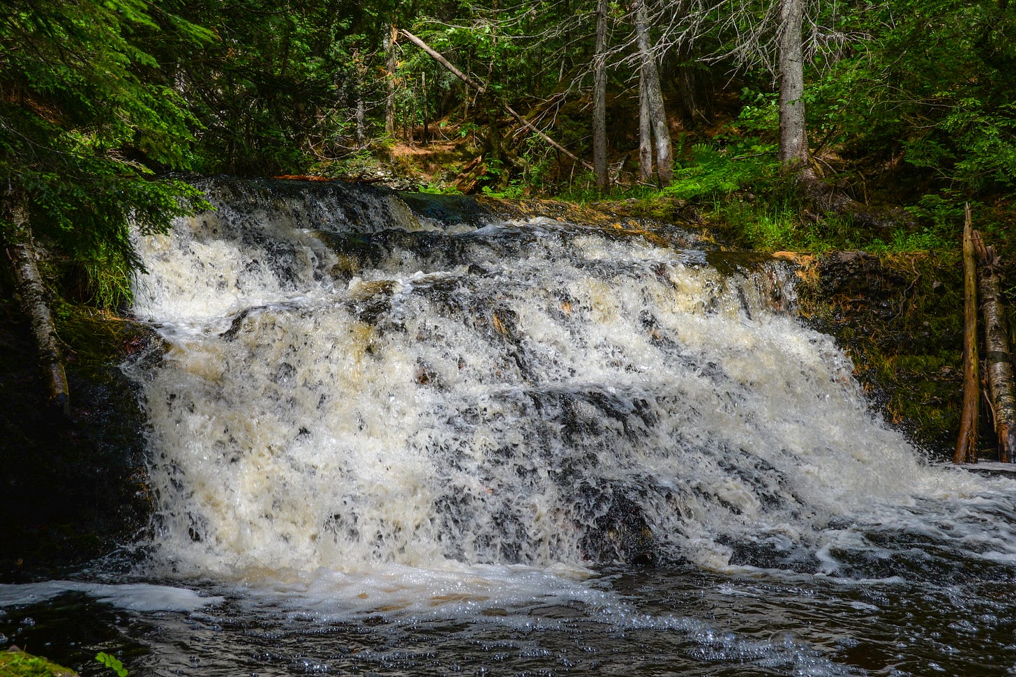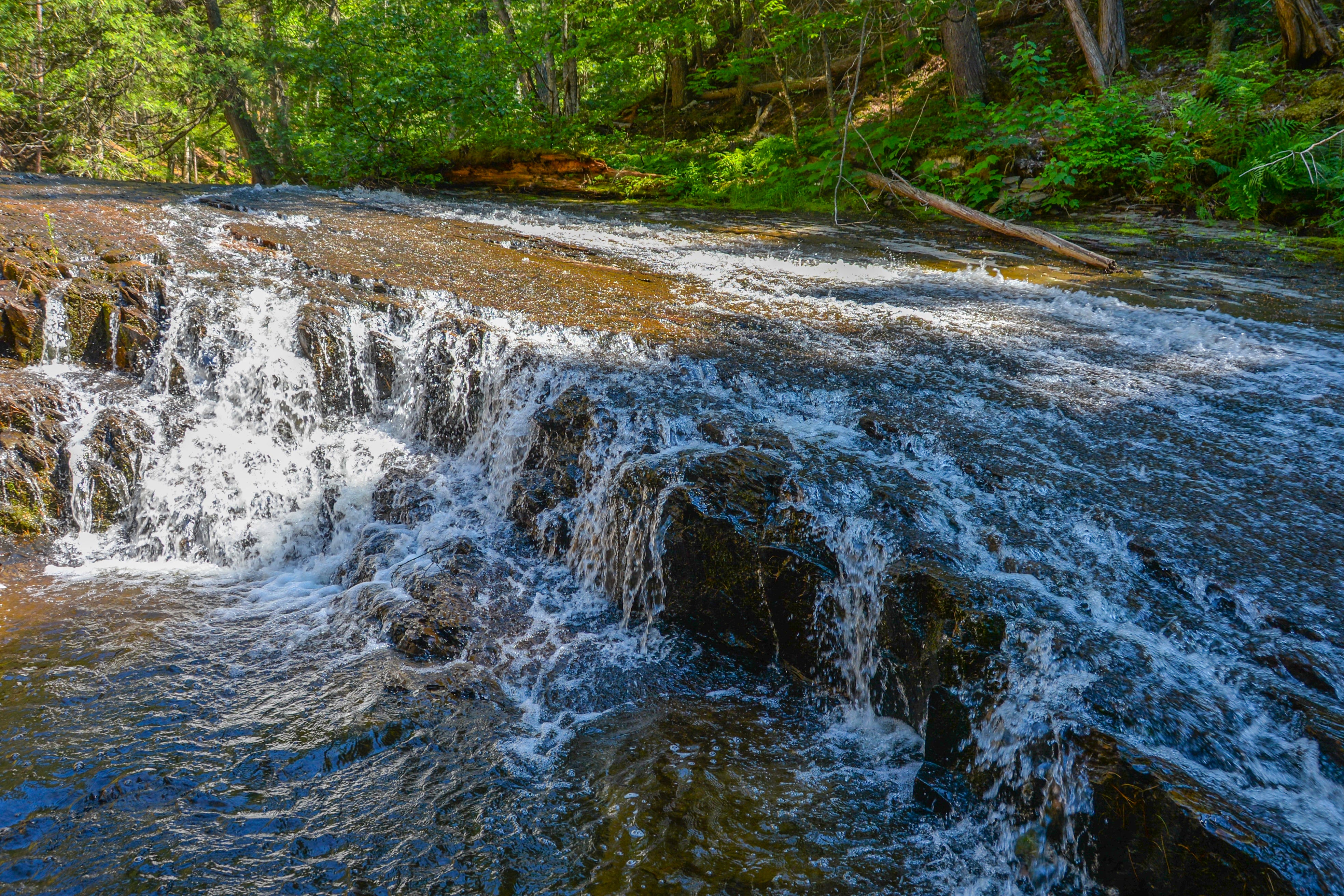 This waterfall can be reached by hiking a combination of formal and informal ORV trails just off of M-26 to the northeast of where you cross the East Branch of the Firesteel River.