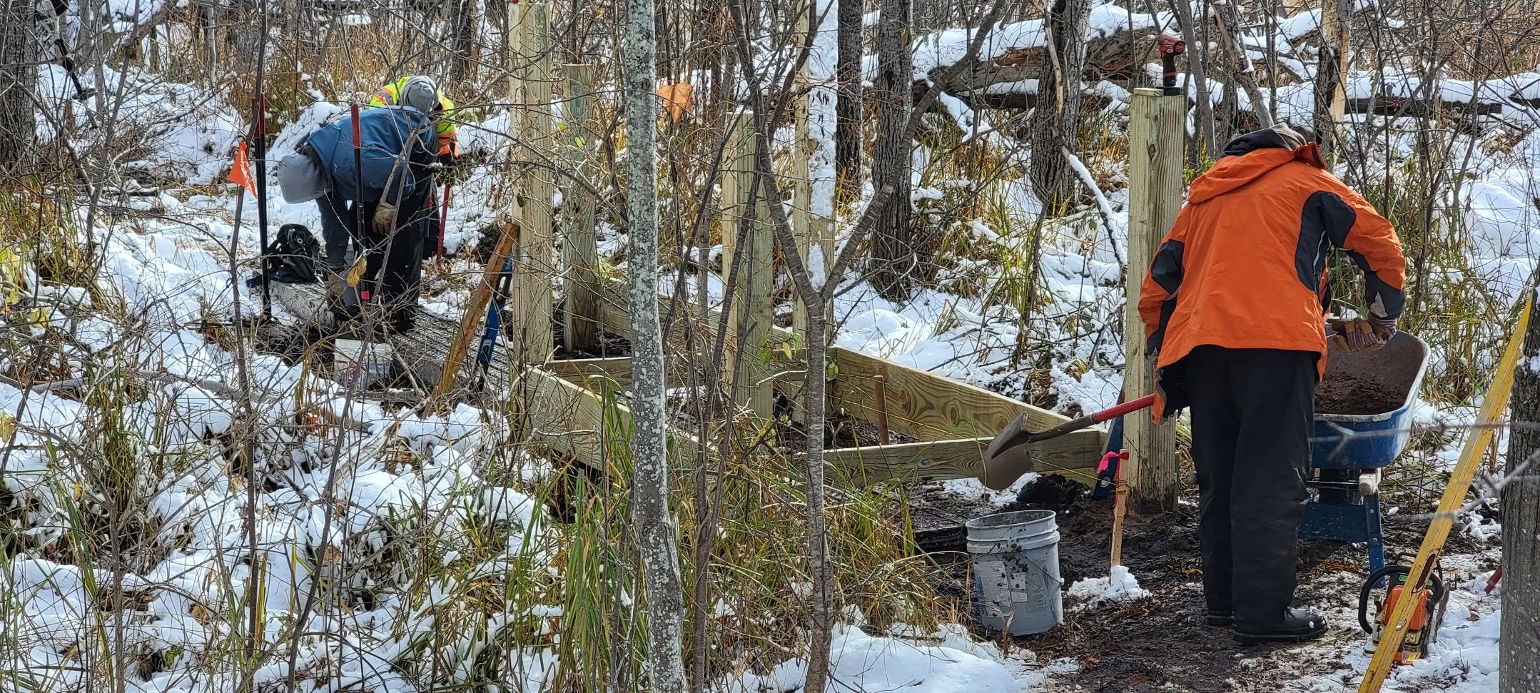 On Thursday, DP Construction began work on our historic interpretive trail boardwalk here in Chassell! I have talked frequently about this project in past postings, but it was very exciting to reach this day after so much planning and preparation. You can follow the work on the project here on the Remote Workforce Keweenaw Newsletter.