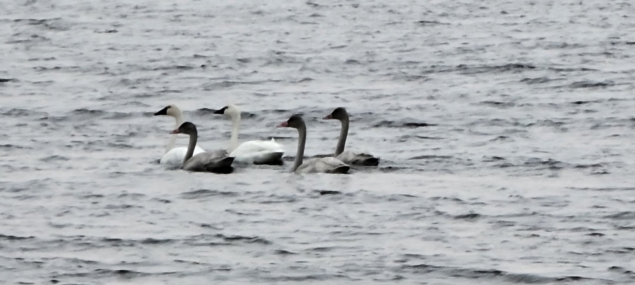 That afternoon I got a heads up from our friend Eero that we had some trumpeter swans on the lake. Sure enough this family of five was cruising the shoreline.