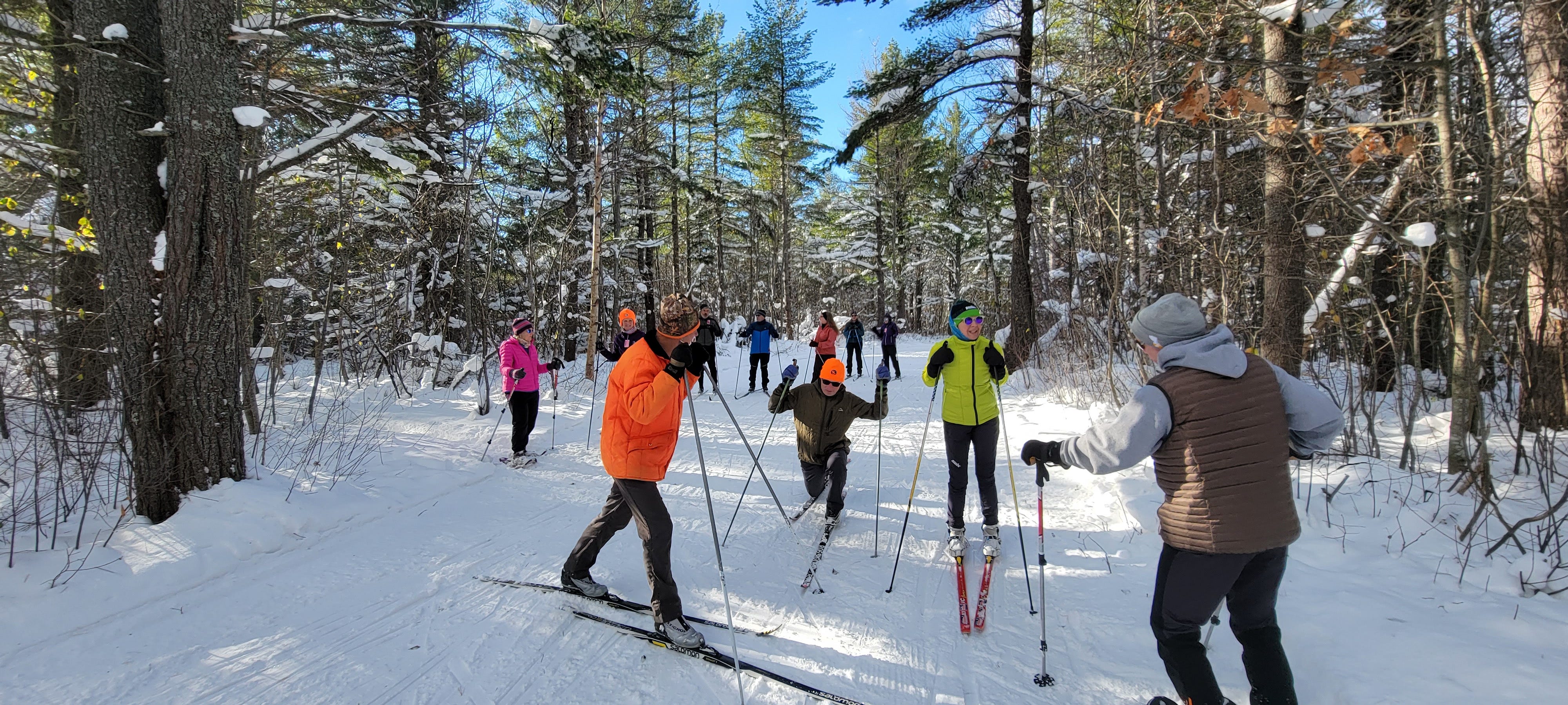 Over the weekend we got in our first ski of the season at Swedetown with our hiking/skiing group. After having had snow over the previous several days, it was great to see the sun and blue sky again! Even though it was not tracked yet and not rolled in many places, we greatly enjoyed our 2 1/2 hours of skiing.
